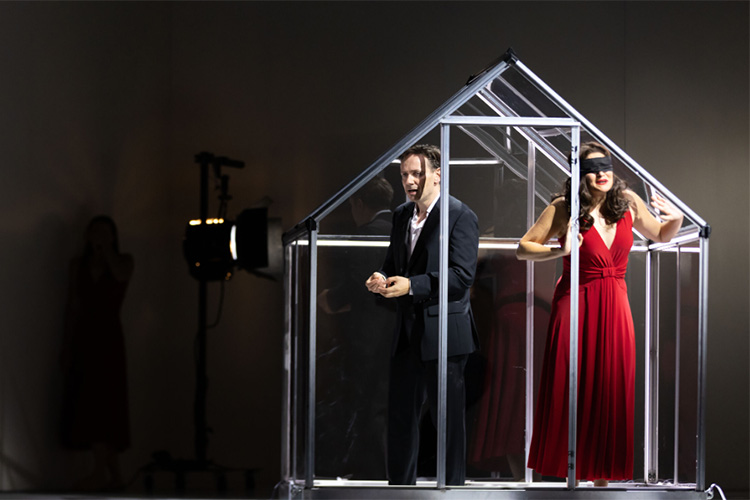 Years have passed in the Hades that is Orpheus’s fractured imagination. Eurydice won’t leave. Orpheus won’t look at her or tell her why. They are stuck in a hell inside heaven. Eurydice pleads and Orpheus relents. He looks at Eurydice, who dies. Orpheus is bereft, realising all is lost. His world further dislocates from reality and Amor and Eurydice return, funerals and weddings meld into a celebration of the triumph of love, which is death.